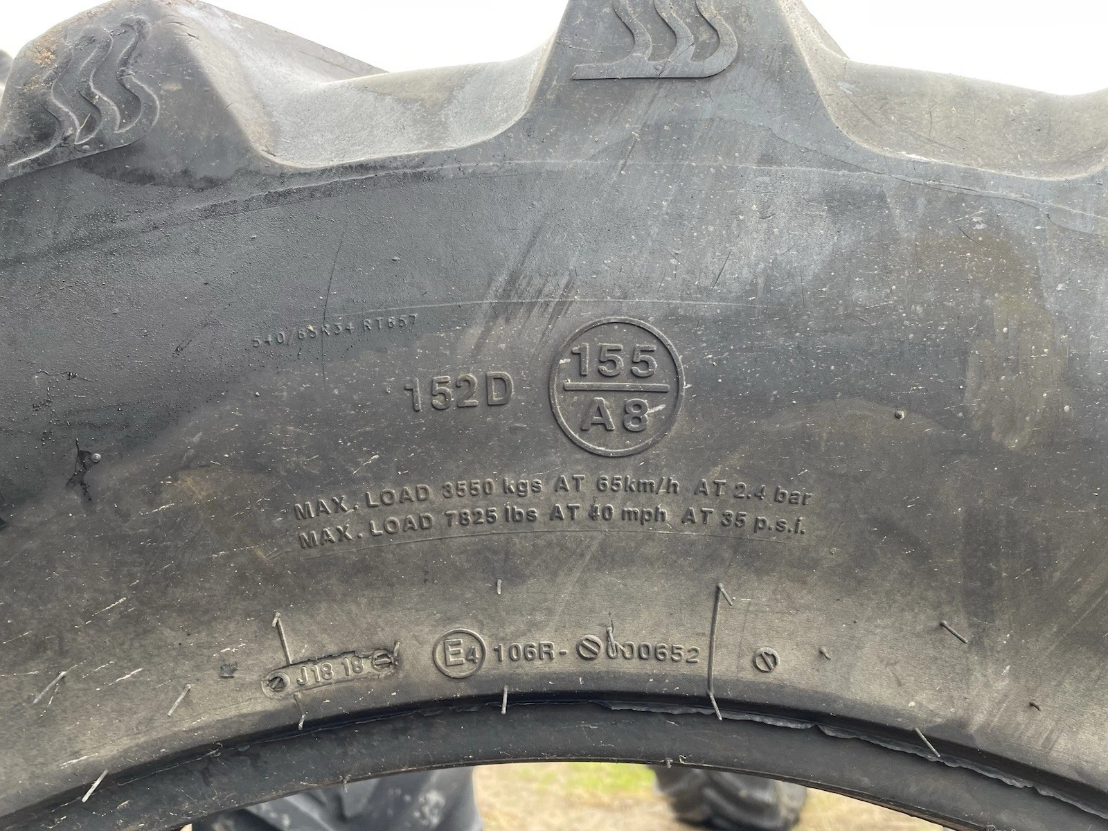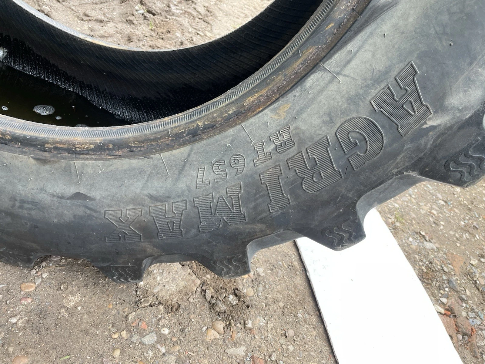 BKT Agrimax RT657 540/65R34 tyres with approx 70% tread remaining. 152 D / 155 A8. Tubeless.
