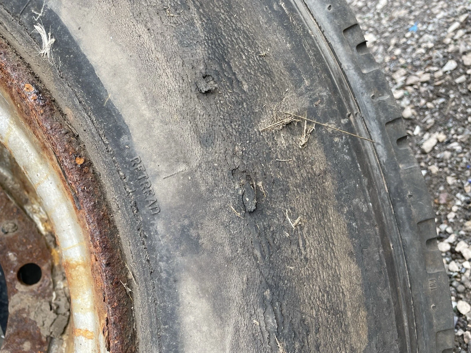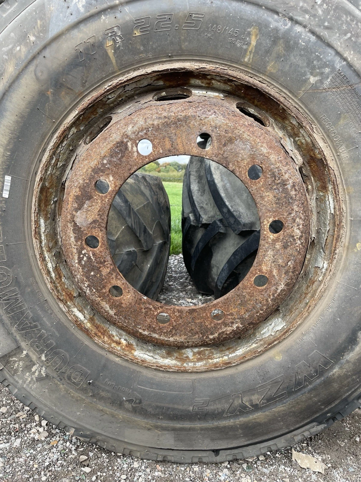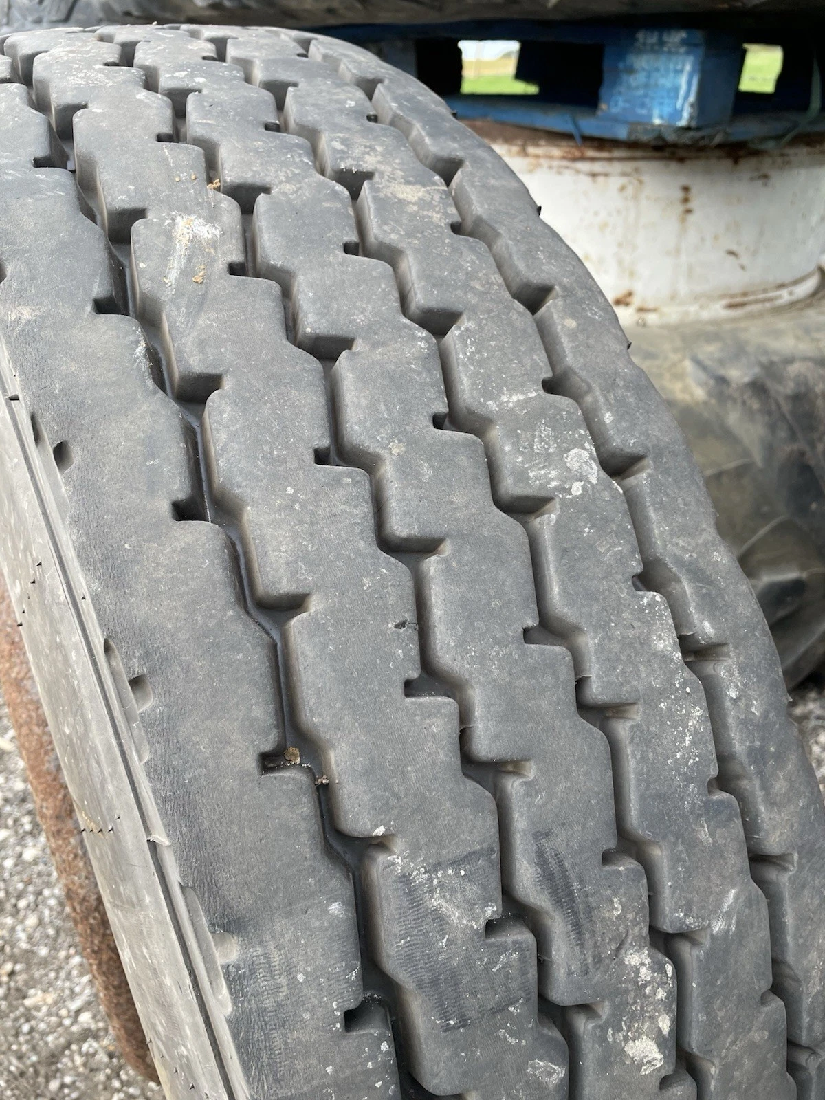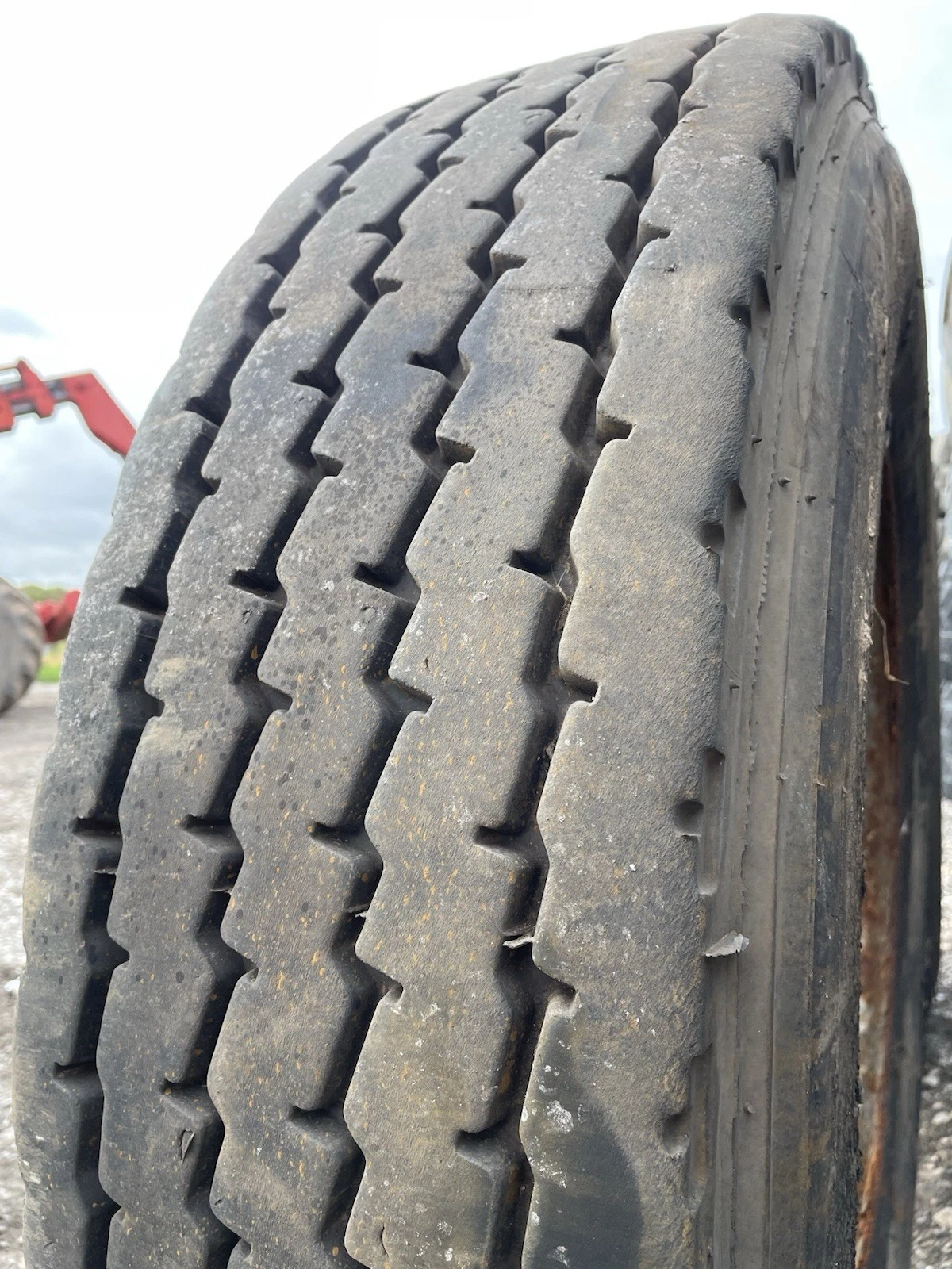 Duramould 11R22.5 10 Stud Wheels with approx 90% tread. 148 / 145 J. Tubeless. Remoulds. Suitable for farm trailer.