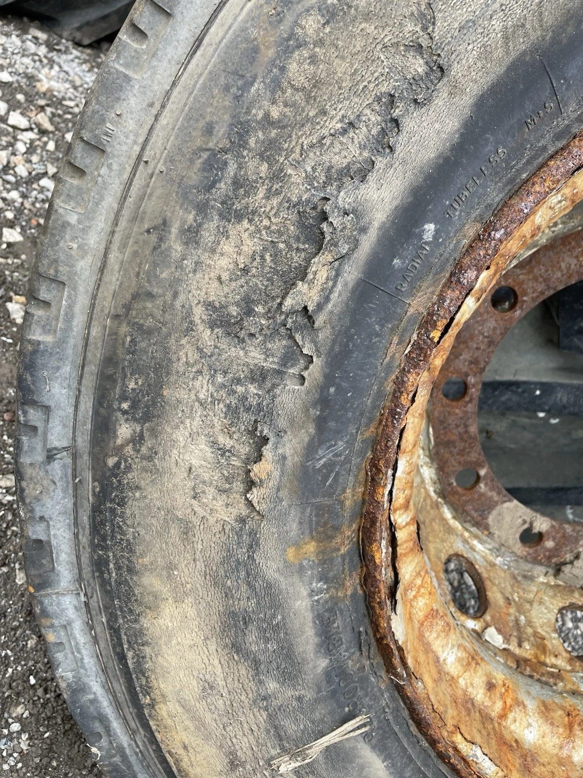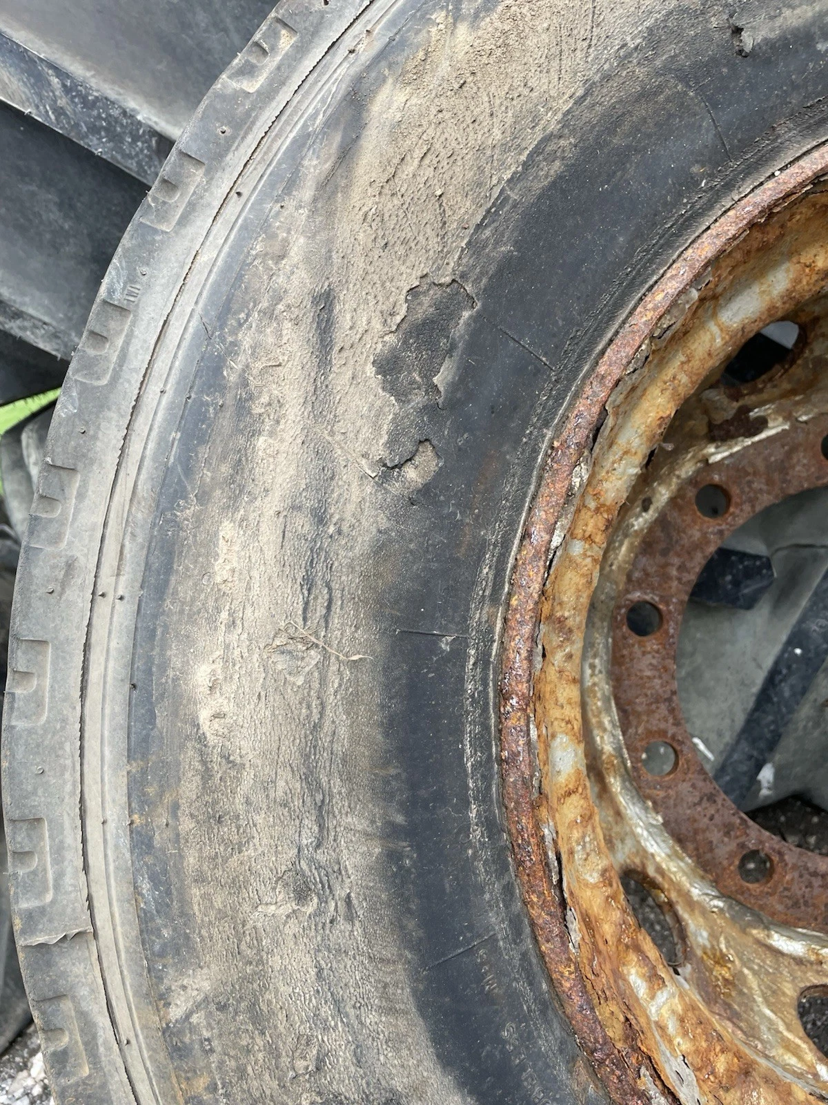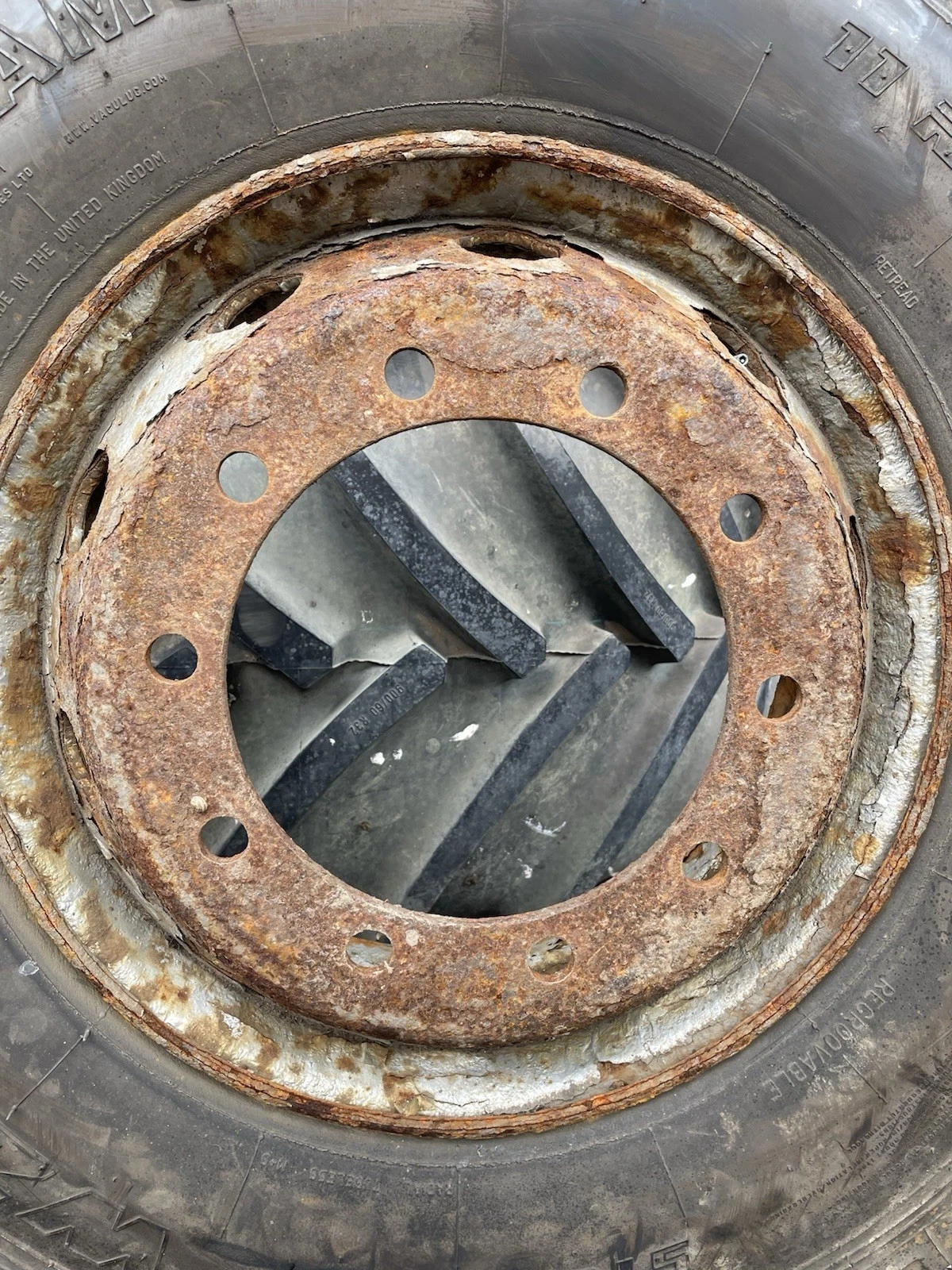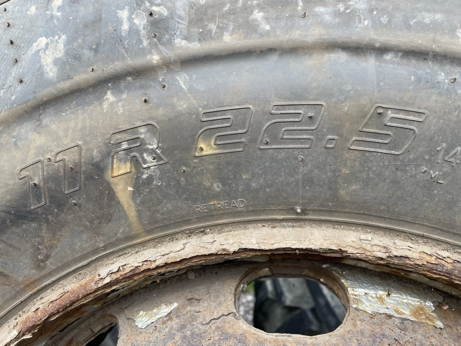 Duramould 11R22.5 10 Stud Wheels with approx 90% tread. 148 / 145 J. Tubeless. Remoulds. Suitable for farm trailer.