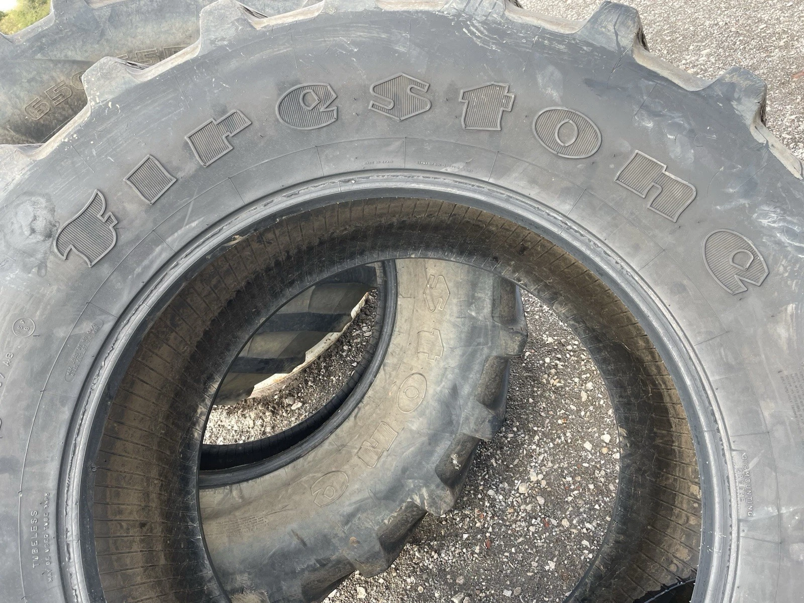 Firestone Radial 9000 650/65R38 tyres with approx 40% tread remaining. 157 D. Tubeless.